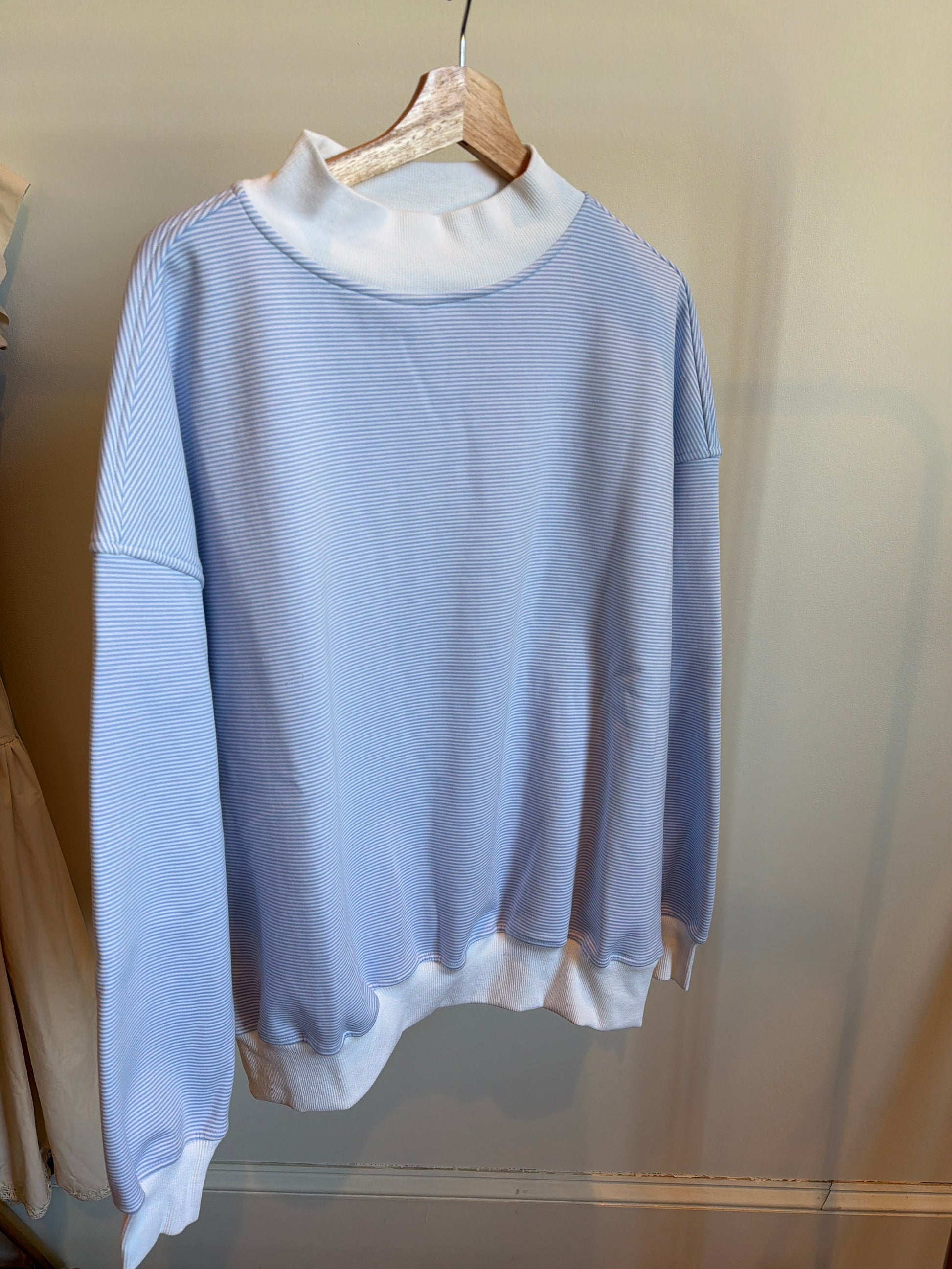 Bri Light Blue & White Striped Mockneck Sweatshirt