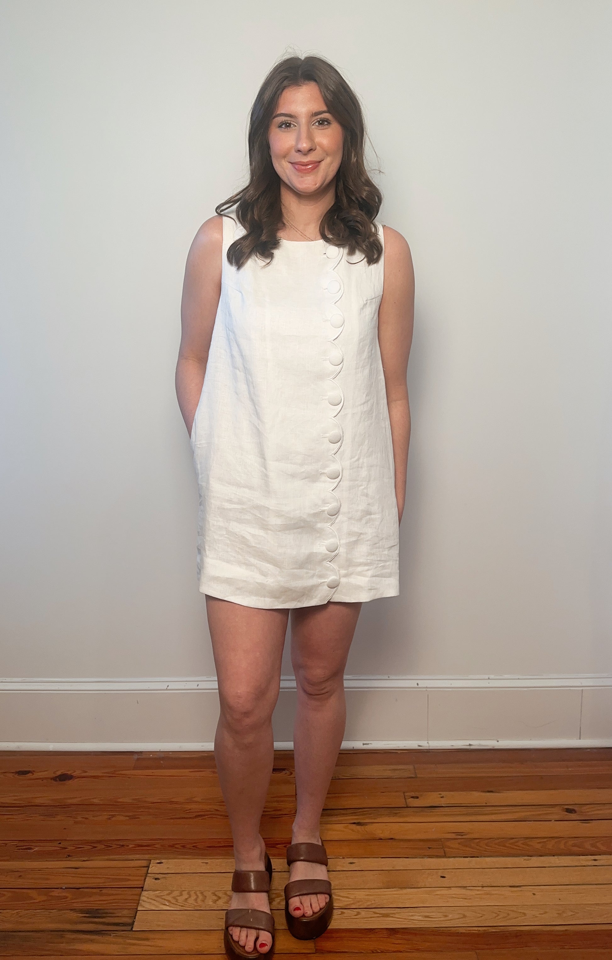 Unleash your preppy and feminine side with our Magnolia Scalloped Mini Dress. Featuring delicate scalloped details and convenient pockets, this versatile dress is perfect for any occasion. Show off your flirty charm while staying stylish and functional.